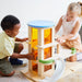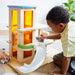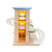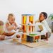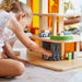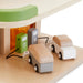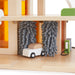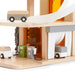 Enhance any block play town with this beautifully crafted wooden Parking Garage with Elevator. Children can engage in imaginative play and storytelling using authentic features like a car wash, gas pump, and electric car charging station. Send cars zooming down the ramps or lift them to higher levels using the manual elevator for endless fun.