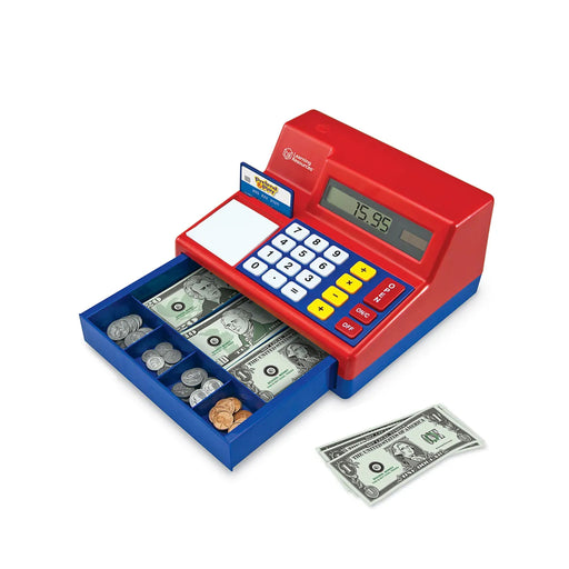 Cash Register for Kids with a working solar-powered calculator and pretend cash register. Encourage Money and Math Skills: Includes 30 actual-size ...